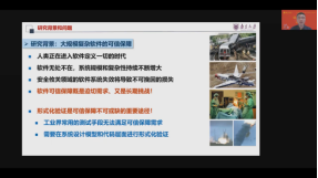 报告首先对大规模复杂软件的可信保障的需求与挑战进行了介绍。说明在工业场景下很多需求都无法满足,需要在系统设计模型和代码层面进行形式化验证。问题逐步从全局验证到有界验证进行过度。指明核心问题为:可达性检验问题全局不可判定。之后阐明了有界验证是软件模型检验通向工业应用的一个可行之路。指明了有界验证的难点与挑战,例如:状态空间爆炸、约束求解能力难以支持、软件代码上难以处理过千行的代码等。卜磊团队独辟蹊径提出了:基于路径遍历的有界验证途径。
